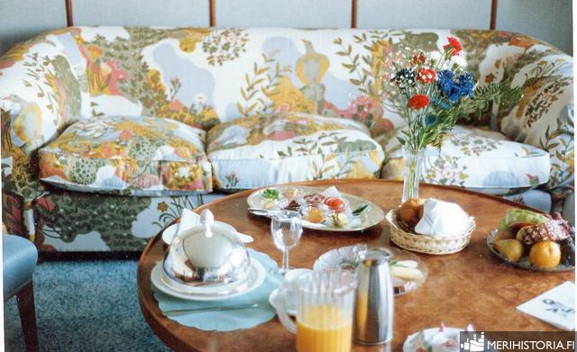 Frukostdukning i hytt 6314 (en av redarhytterna) på MS OLYMPIA före ankomst till Stockholm kl 08:57, befälhavare T. Söder.