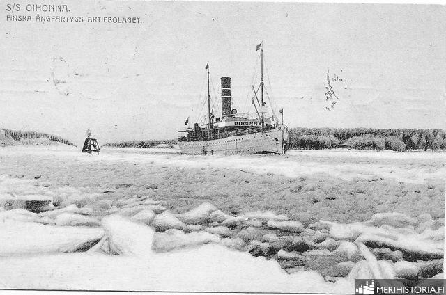Samma motiv som bild nr 319 men svart-vit. Adressidans text: FINSKA ÅNGFARTYGS AKTIEBOLAGET FINLAND STEAMSHIP COMPANY, HELSINGFORS TEL. “FINSKA”