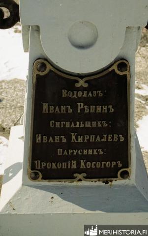 En av de omgivande minnesstenarna med namn på de döda vid Rusalkas undergång.